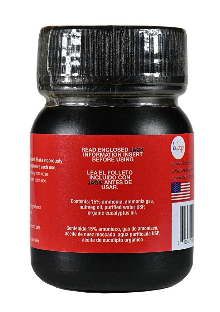 If not used in compliance with our instructions, JACK can be dangerous. We recommend you read the box label including Drug Facts panel and product insert carefully prior to use. We accept no responsibility for any misuse of JACK Smelling Salts + Eucalyptus.